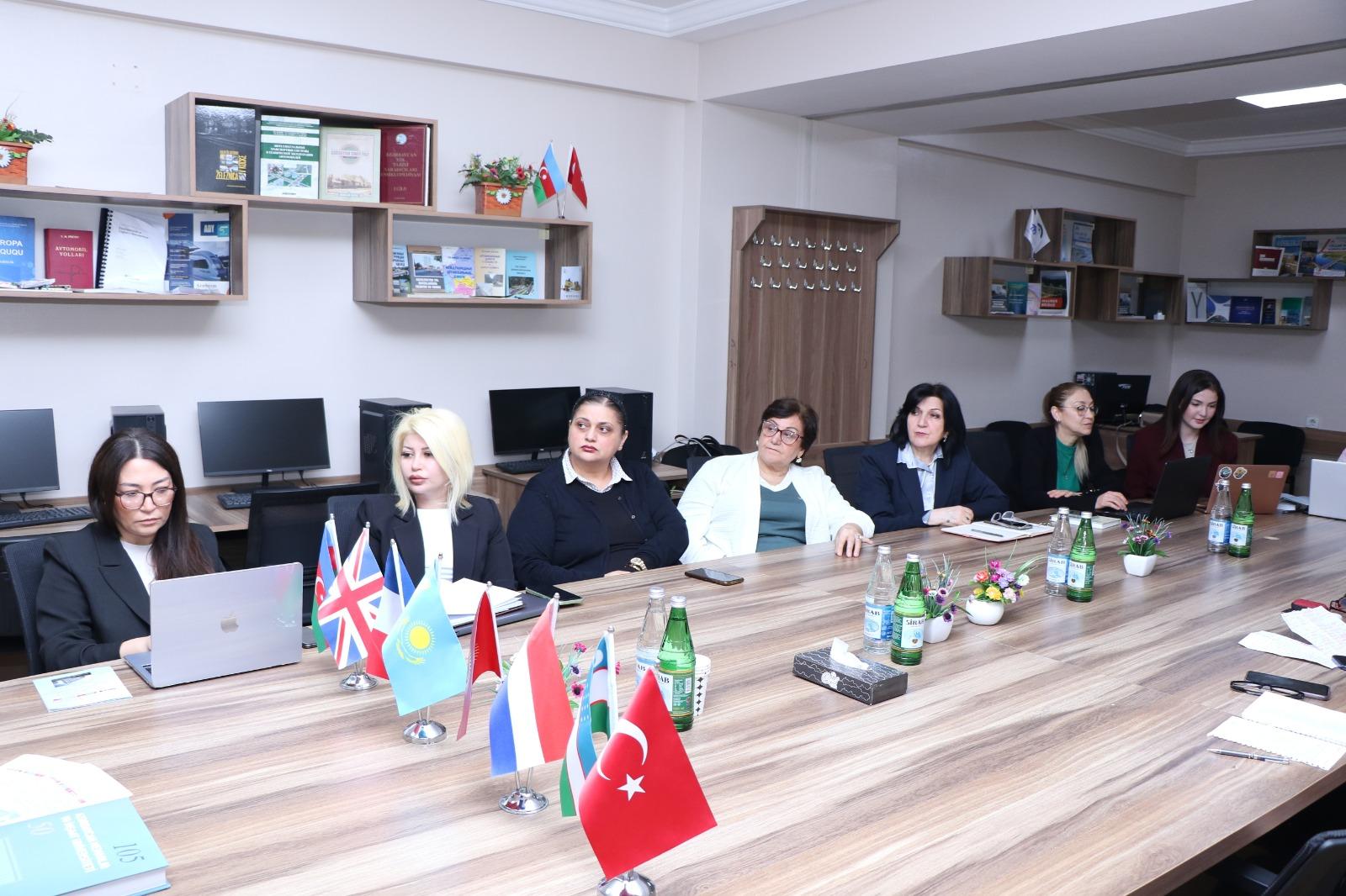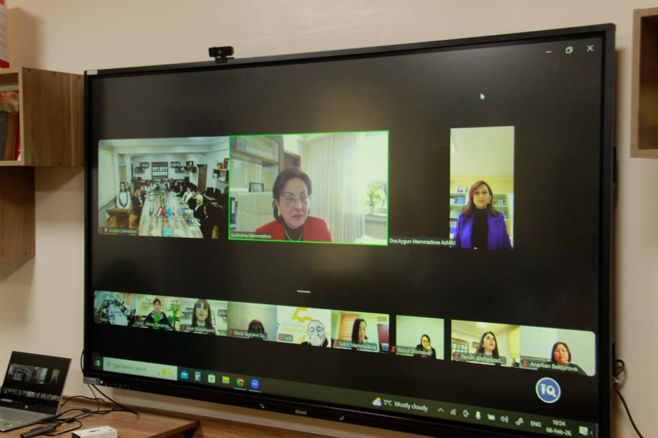 AzMİU-nun Əcnəbi dillər kafedrasının müdiri, filologiya üzrə fəlsəfə doktoru, dosent Aygün Məmmədova kafedranın kadr potensialı, elmi-pedaqoji fəaliyyəti və tətbiq etdiyi innovativ tədris metodikası barədə ətraflı məlumat verib. O, dil tədrisində kommunikativ yanaşma, rəqəmsal resurslardan istifadə və tələbəyönümlü metodların üstünlüklərini qeyd edib.