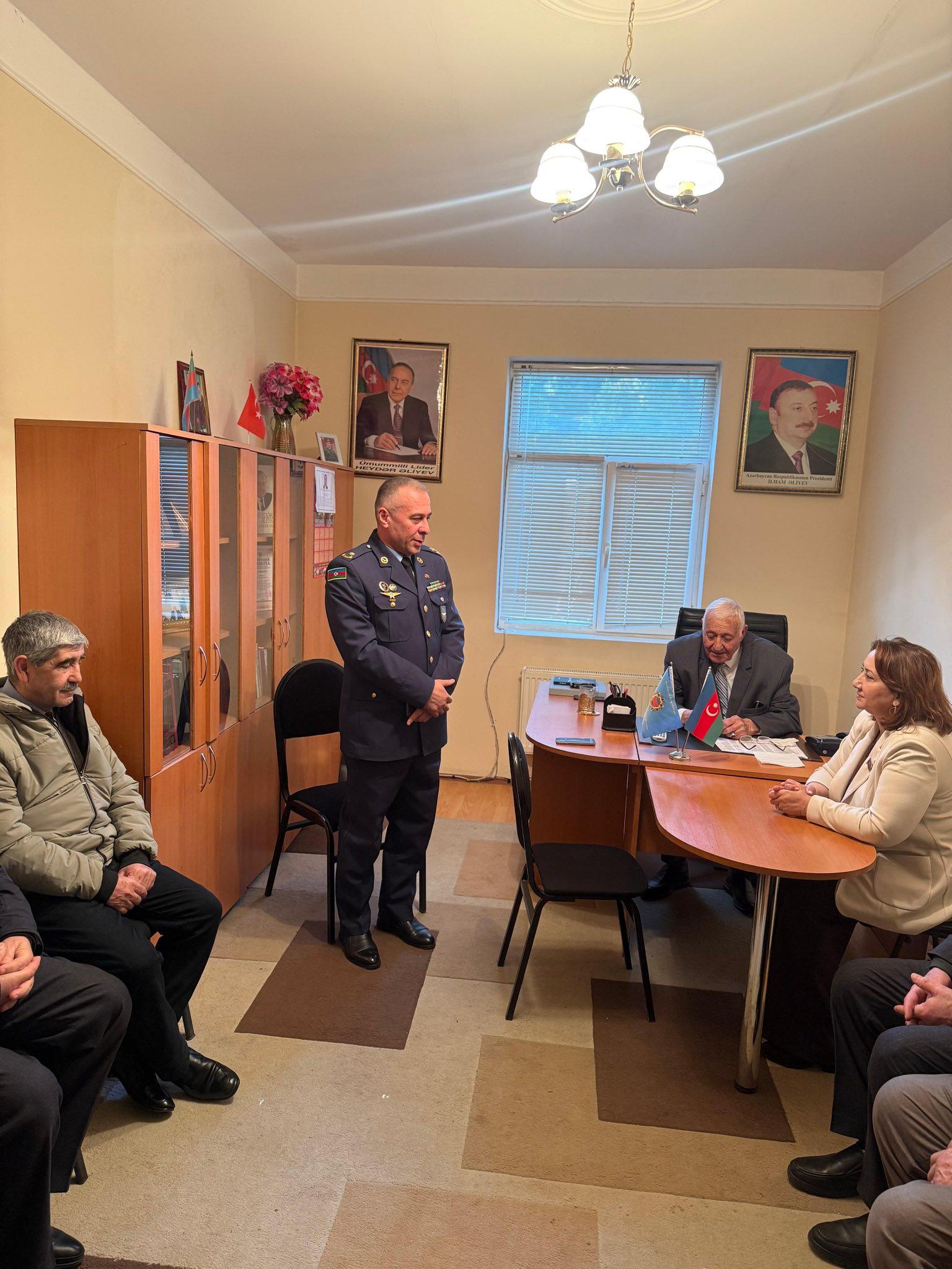 “Bu gün Sumqayıt şəhər Müharibə, Əmək və Silahlı Qüvvələr Veteranları Təşkilatının sədri Sovet Şükürovu və təşkilatın bir qrup fəal üzvünü qərargahlarında ziyarət etdik. Görüş zamanı veteranlarımızla səmimi söhbət etdik, onların fəaliyyəti və gənc nəslin vətənpərvərlik ruhunda tərbiyəsi istiqamətində gördükləri işlər barədə fikir mübadiləsi apardıq. Veteranlarımızın zəngin həyat yolu və təcrübəsinin gənclər üçün əsl örnək olduğu vurğulandı. Veteranlarımızı qarşıdan gələn Ramazan və Novruz bayramları münasibətilə təbrik etdik, onlara möhkəm cansağlığı və xoş arzular dilədik”.