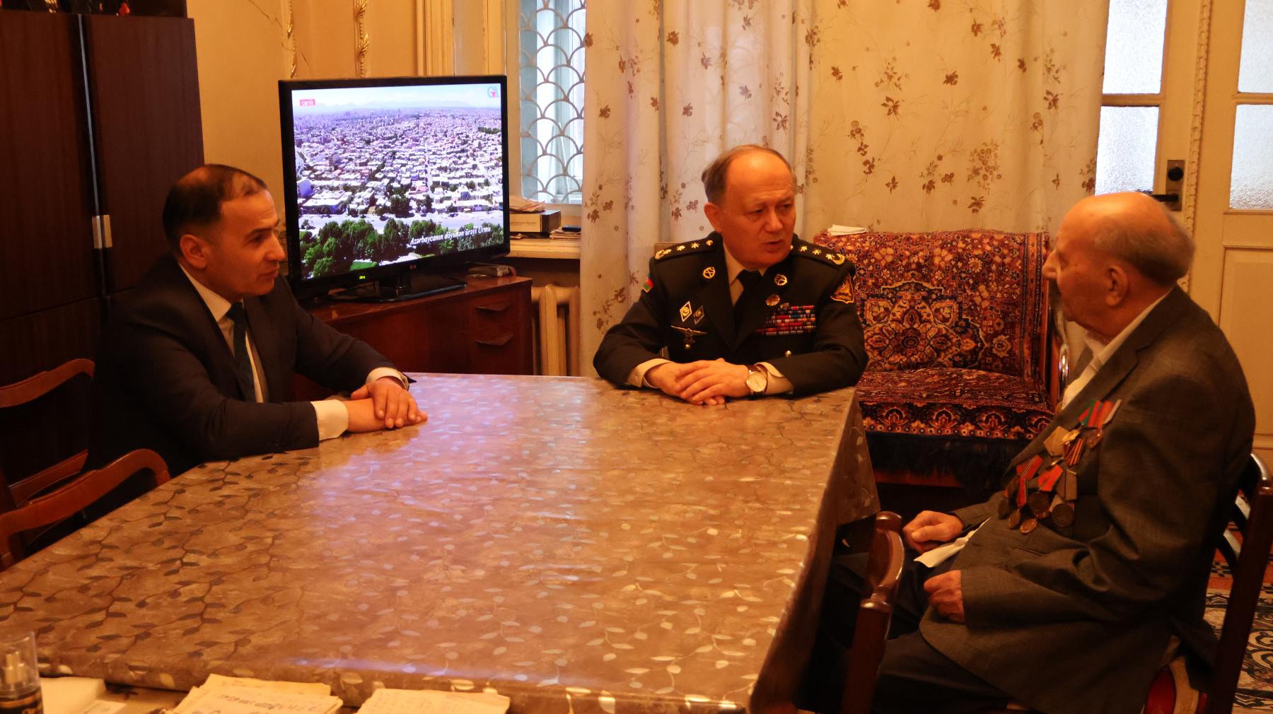 Polkovnik Cəlil Xəlilov 102 yaşlı müharibə veteranı Qaflan Ömərovu ziyarət edib