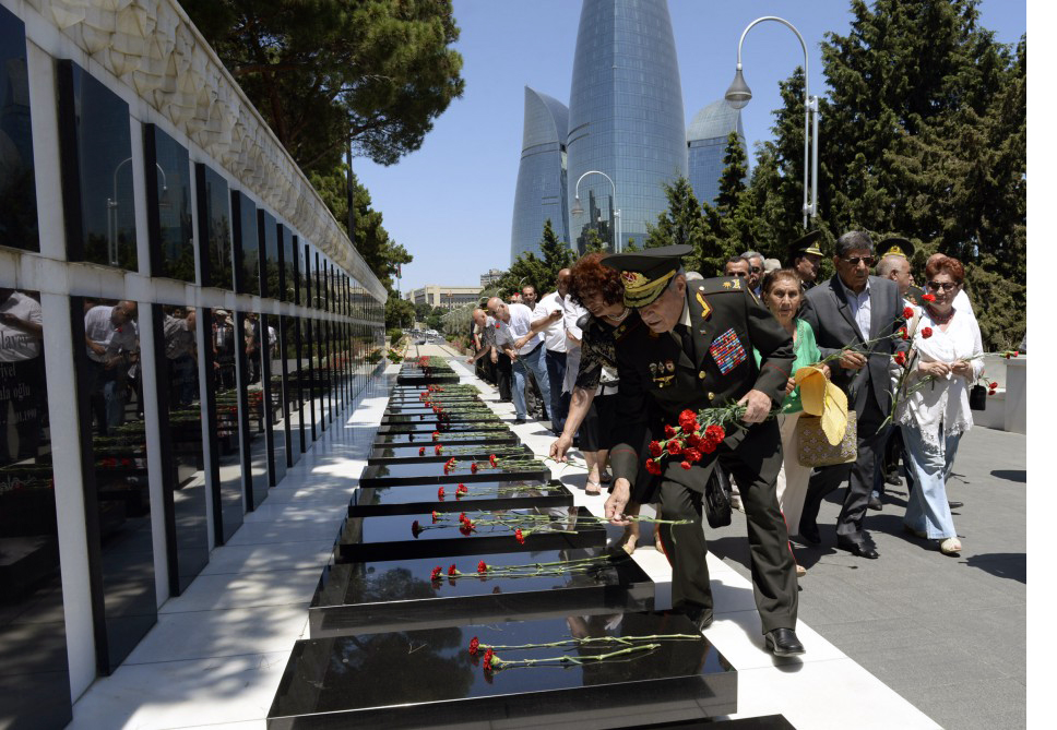 Sonra Şəhidlər xiyabanına gələn veteranlar Azərbaycanın müstəqilliyi və ərazi bütövlüyü uğrunda mübarizədə canlarından keçmiş qəhrəman Vətən övladlarının məzarları üzərinə gül dəstələri, “Əbədi məşəl” abidəsinin önünə əklil qoyublar.