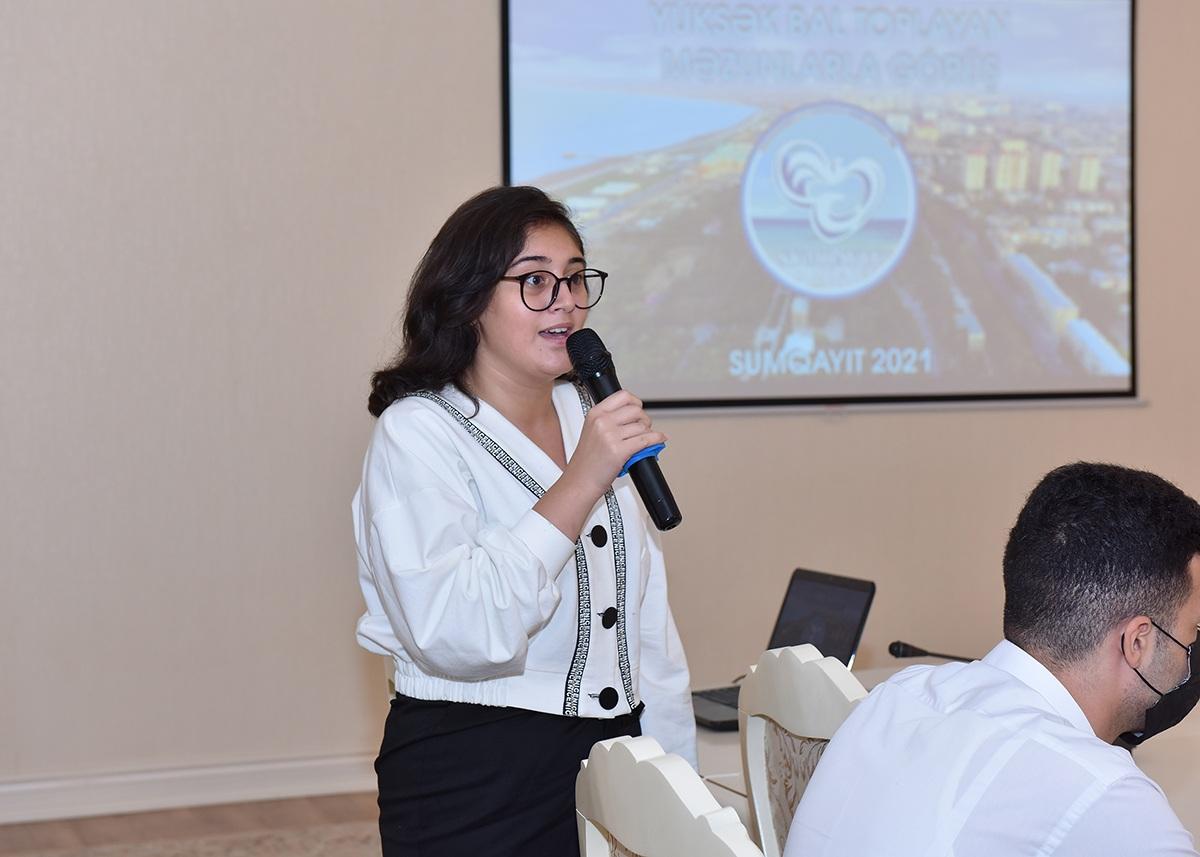 Vurğulanıb ki, 2020-2021-ci dərs ilində Sumqayıt şəhəri ümumtəhsil məktəblərinin XI siniflərini 2920 nəfər məzun başa vurub. Məktəblərdə alınan ilkin məlumatlara əsasən onlardan 2475 nəfəri ali məktəblərə sənəd verib. Qəbul imtahanlarında iştirak edən məzunların 1794 nəfəri, yəni abituriyentlərin 72%-i ali məktəblərə qəbul olunub.Onlardan 150 nəfəri 600-dən çox bal toplamışdır ki, bu da ötən ilki göstəricidən 31 nəfər çoxdur. O cümlədən, 650-dən çox bal toplayanların sayı 40 nəfər olmuşdur.