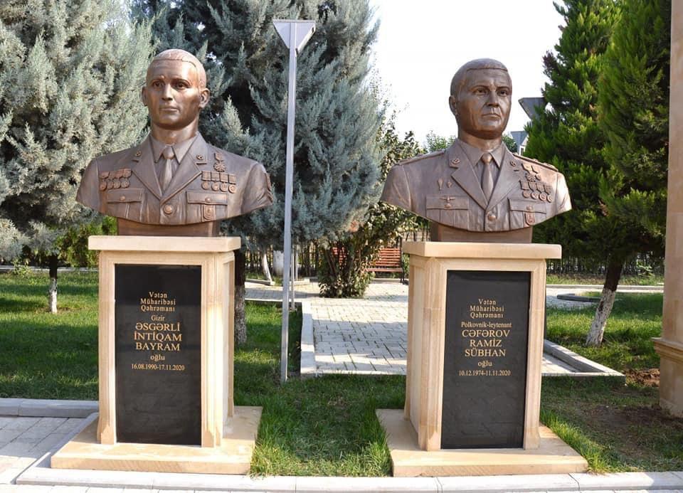 Masallıdakı Şəhidlər Kompleksində diqqət çəkən məqamlardan biri də kompleksdə şəhidlərin fotoları ilə yanaşı, qəhrəmanların büstlərinin də yer almasıdır. Bütövlükdə Şəhidlər Kompleksində 5 qəhrəmanın büstü mövcuddur ki, onlardan 3-ü Birinci Qarabağ Müharibəsinin Milli Qəhrəmanı, 2-i isə 44 günlük İkinci Qarabağ savaşının Vətən Müharibəsi Qəhrəmanıdır. Dəmir iradəli qəhrəmanların tuncdan hazırlanan bu büstləri Şəhidlər Kompleksində xalqımızın mübarizə əzminin, igidlik və qəhrəmanlıq ruhunun əzəli-əbədi təntənəsi kimi ucalmaqdadır. Heç şübhəsiz, bu büstlər bügünkü və gələcək nəsillərə yaşadıqları xoş və işıqlı günlərə görə kimlərə minnətdar olduqlarını xatırladacaq, dar məqamda onları yeni zəfərlərə, qələbələrə ruhlandıracaqdır. Bu büstlər öz əzəmətli görkəmləri ilə həm də gənc nəsillərə başa salacaq ki, bu xalq onu yaşadan qəhrəmanlarını öz ruhunda, qəlbində, könül dünyasında sonsuza kimi yaşatmağa qadirdir.