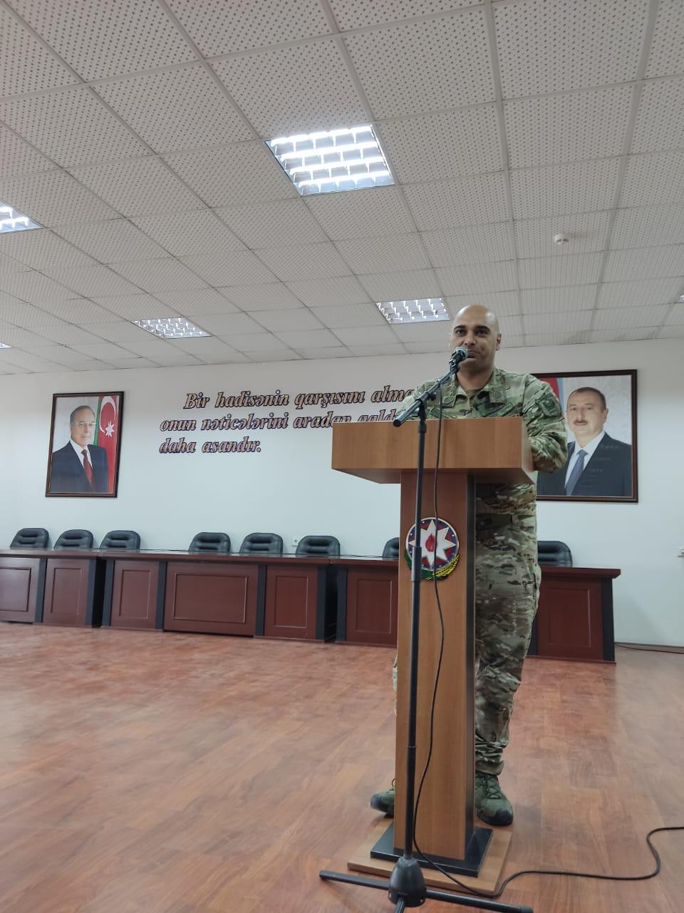 Daha sonra Respublika Veteranlar Təşkilatının mətbuat katibi Seymur Əliyev konfrans iştirakçıları adından Azərbaycan Respublikasının Prezidenti - Silahlı Qüvvələrin Ali Baş Komandanı cənab İlham Əliyevə ünvanlanan müraciətin mətnini oxuyub.