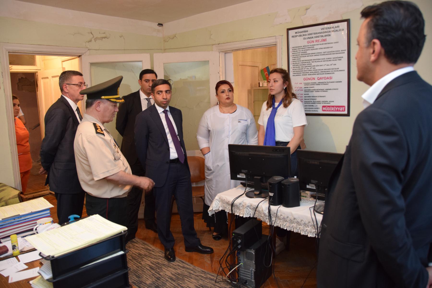 Xəstəxananın korpus və şöbələrini gəzən İcbari Tibbi Sığorta üzrə Dövlət Agentliyinin İdarə Heyətinin sədri Zaur Əliyev xəstəxanadakı tibbi avadanlıqlar, müalicə otaqları, tibbi personalla tanış olub. Xəstəxanadakı veteranlarla da görüşən Zaur Əliyev onlarla söhbət edib, palatalarda veteranlara yaradılan şəraitlə tanış olub. Zaur Əliyev həmçinin, xəstəxana rəhbərliyinin və veteranların arzu və təklifləri ilə də maraqlanıb, xəstəxananın daha effektiv fəaliyyəti, veteranların müalicə və istirahət şəraitinin yaxşılaşdırılması üçün bütün imkanların dəyərləndiriləcəyini qeyd edib.