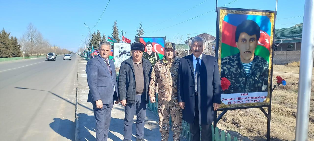 Ağdam rayonunun Quzanlı qəsəbəsində şəhidlərin şəkilləri ictimai məkanlarda yerləşdirilib