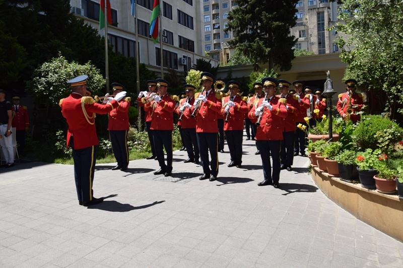 Tədbirdə Müdafiə Nazirliyinin hərbi orkestri tərəfindən hərbi-vətənpərvərlik mahnıları ifa olunub.