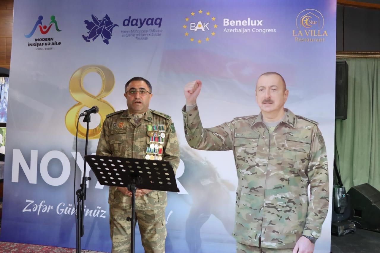 Vətən Müharibəsi qazisi Polkovni-leytenant Anar Həsənov və digər qazilərimiz çıxış edərək 44 günlük vətən müharibəsindən danışaraq 8 Noyabr – Zəfər Günü münasibətilə hər kəsi ürəkdən təbrik edərək bu qələbə xalqımızın birliyi, ordumuzun rəşadəti və şəhidlərimizin müqəddəs qanı bahasına qazanıldığını bildirdilər.